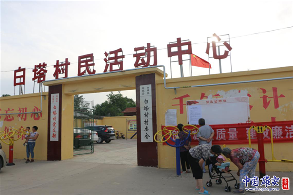 《征收土地和補(bǔ)償安置公告》張貼在容城縣白塔村民活動(dòng)中心。劉淼 攝