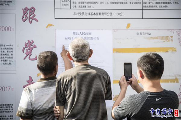 “雖不舍故土,但更愿意用行動(dòng)積極支持新區(qū)建設(shè)。”圖為西陽村村民紛紛拿起手機(jī)拍攝公告。中國雄安官網(wǎng)記者王京卓 攝