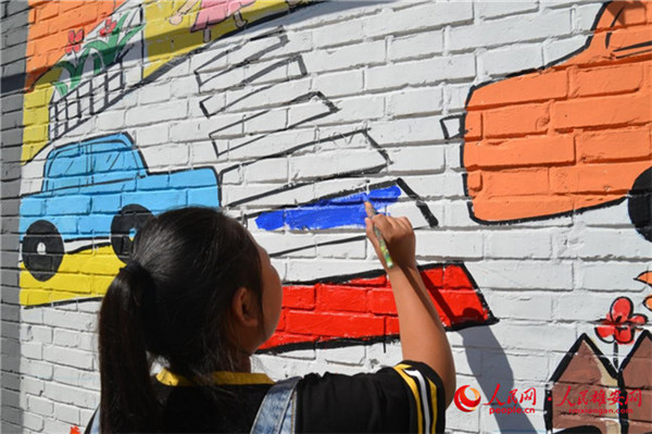 人民網(wǎng)雄安9月3日電 “安全童行 鄉(xiāng)繪美好”兒童友好鄉(xiāng)村公益彩繪活動日前在雄安新區(qū)雄縣北沙口鄉(xiāng)大莊村舉辦,村里的孩子們在來自北京的志愿者的帶領下,用畫筆描繪著充滿童趣的交通安全主題墻繪。