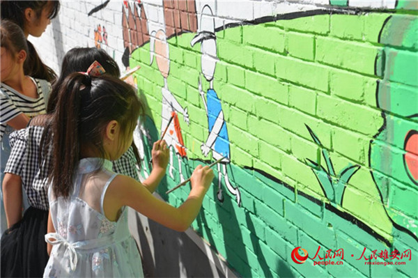 孩子們在進行墻繪。朱峙委攝