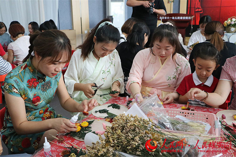 教師節(jié)當(dāng)天,北京市六一幼兒院雄安院區(qū)舉辦“花兒獻(xiàn)祖國,傳承經(jīng)典文化”主題活動,老師和孩子們一起用插花、制作團(tuán)扇等形式慶祝新中國成立70周年和第35個教師節(jié)。