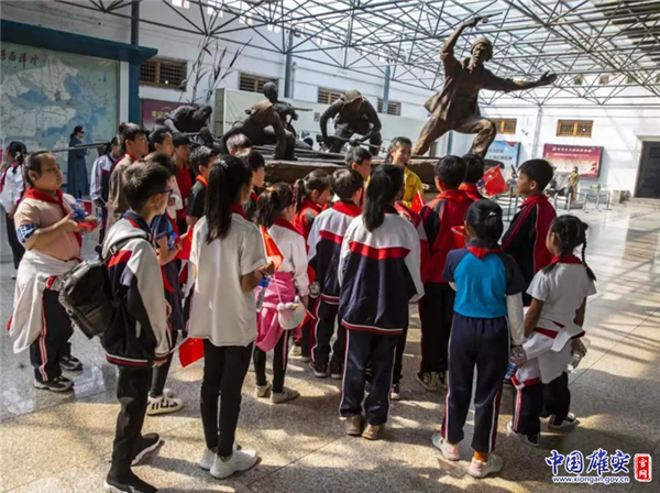 孩子們參觀白洋淀雁翎隊紀念館。中國雄安官網(wǎng)記者封俊龍 攝