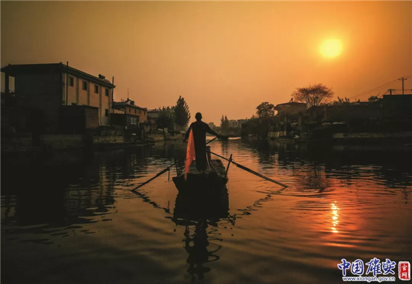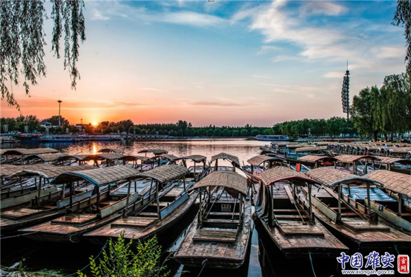 夕陽西下,人們劃船歸來。中國雄安官網(wǎng)記者毛鶴然 攝