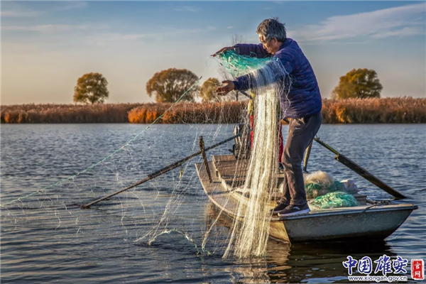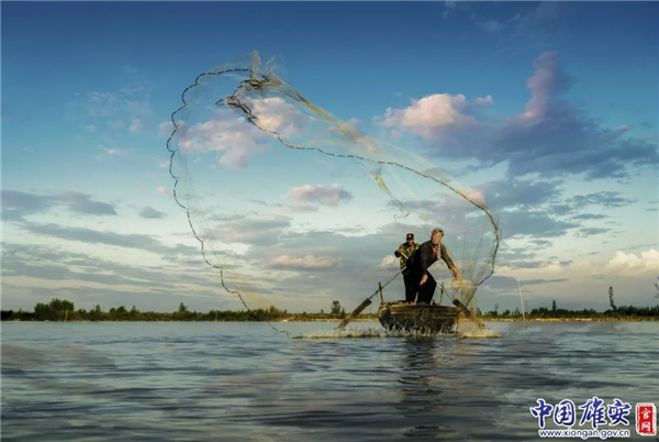 白洋淀上打魚的人正在下網(wǎng)。趙瑞光 攝