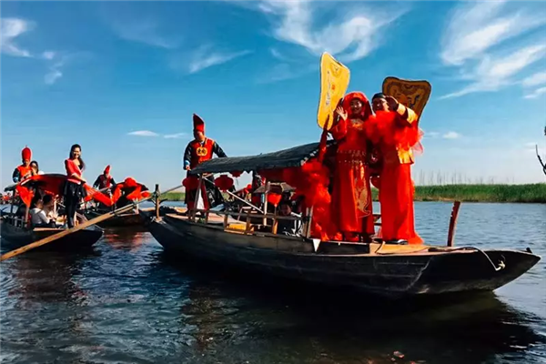 白洋淀“水上婚禮”。 朱昆侖 攝
