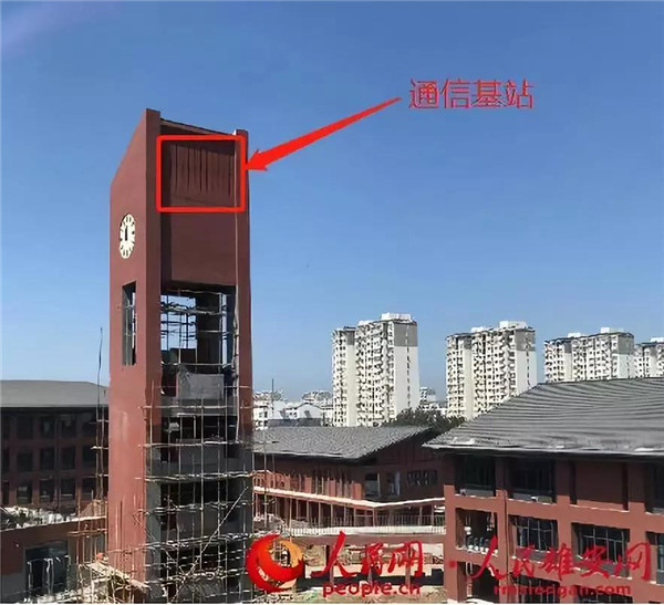 雄縣三中基站坐落在校園的最高標志物——鐘樓上,外側為裝飾格柵玻璃鋼,內部夾層為上下兩層天線,既滿足了校園及周邊5G移動通信覆蓋的需求,外觀上也實現(xiàn)了基站與鐘樓的完美融合。這座塔摒棄了高塔宏站的傳統(tǒng)建設思路,在規(guī)劃之初,就將通信基站作為基本元素融合到建筑物設計之中,依托與整個城市的同步規(guī)劃、同步設計和同步施工,最大程度的保持了建筑物的原有風格和風貌,實現(xiàn)了通信基礎設施與周邊環(huán)境的和諧統(tǒng)一。