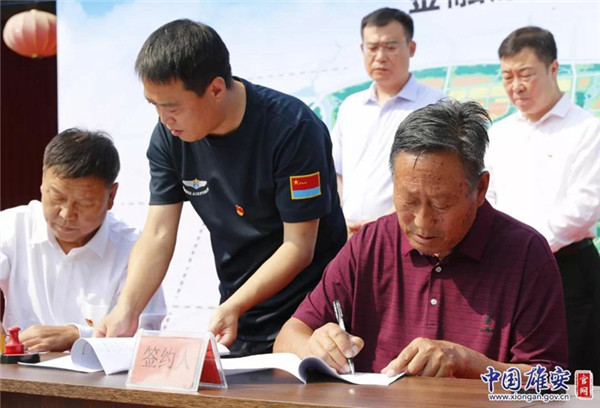 河西村71歲的老黨員陳仲山上臺簽約。中國雄安官網(wǎng)記者馬夢迪 攝