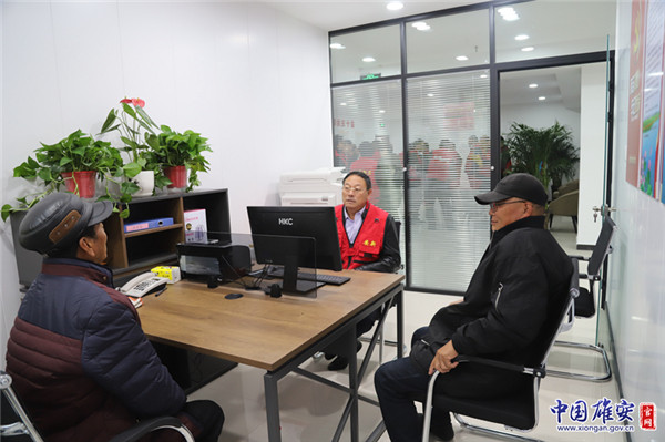 征遷群眾之家的工作人員為征遷群眾“答疑解惑”。中國雄安官網(wǎng)黃海 攝