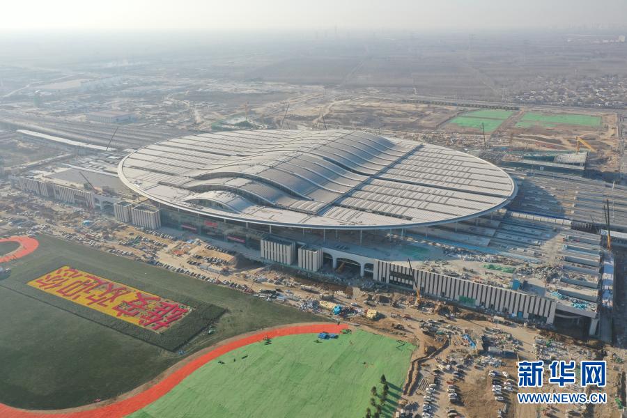 這是河北雄安站(無人機照片,12月16日攝)。新華社發(fā)(中鐵建工集團雄安站項目部供圖)