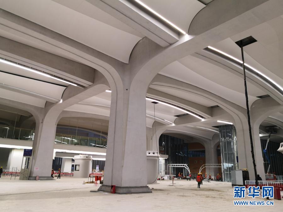 這是河北雄安站首層候車大廳清水混凝土“開花柱”(手機照片,12月16日攝)。新華社記者曹國廠 攝