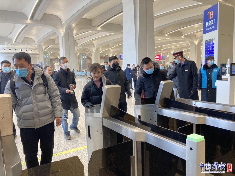 12月27日,在雄安站候車大廳,旅客正在排隊檢票。黃海 攝