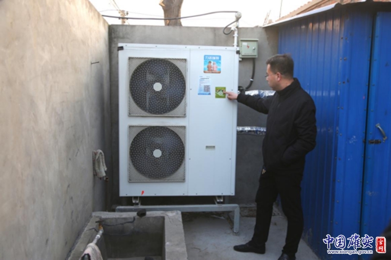 用戶在為記者介紹“電代煤”改造工程中使用的空氣源熱泵。中國雄安官網(wǎng)發(fā)