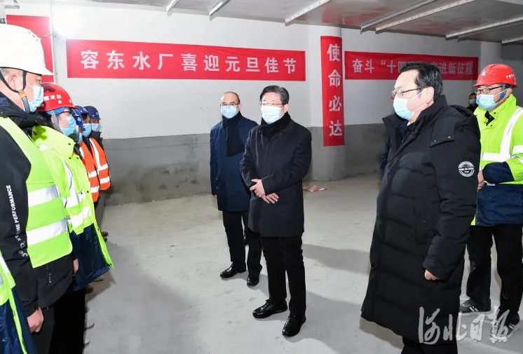 1月1日,在2021年新年的第一天,省委書記、省人大常委會主任王東峰到雄安新區(qū)調(diào)研慰問。省委副書記、省長許勤參加調(diào)研慰問。這是王東峰、許勤在容東片區(qū)再生水廠一期工程建設(shè)現(xiàn)場,聽取工程進(jìn)展情況匯報,看望慰問一線建設(shè)者。河北日報記者趙威 攝
