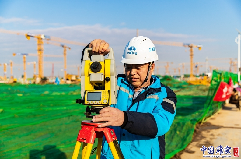 雄安新區(qū)雄東片區(qū)A單元安置房及配套設(shè)施項(xiàng)目建設(shè)工地測量工楊文全。中國雄安官網(wǎng)記者高盟 攝