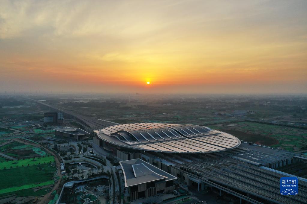 這是京雄城際鐵路雄安站(2021年7月1日攝,無人機照片)。新華社記者牟宇 攝