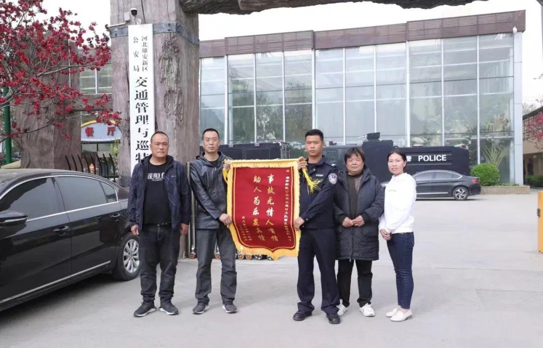 4月11日上午,武先生來(lái)到雄安新區(qū)公安局交巡特支隊(duì),將一面寫(xiě)有“事故無(wú)情人有情 助人為樂(lè)顯真情”字樣的錦旗送到留置保障大隊(duì)隊(duì)員劉沖手中。