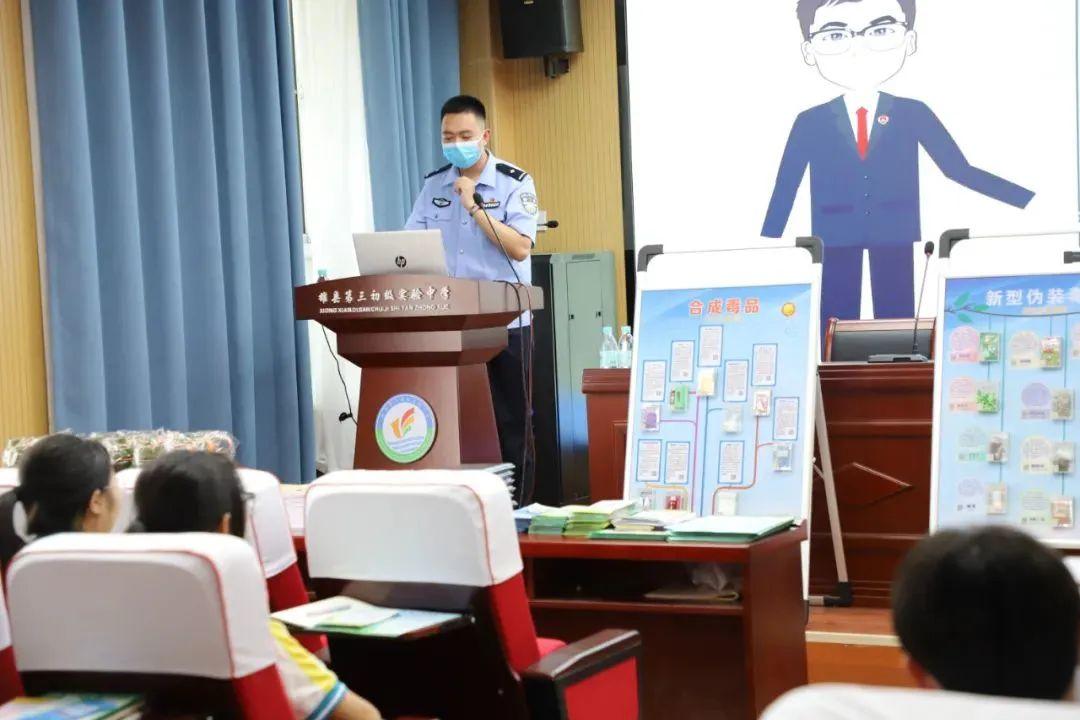 在朱各莊第二中心小學(xué)和第三初級(jí)實(shí)驗(yàn)中學(xué)的禁毒宣傳課堂上,雄縣公安局禁毒大隊(duì)民警向?qū)W生播放禁毒警示片,講解真實(shí)吸毒、販毒的慘痛案例,并且通過互動(dòng)問答等方式,告誡同學(xué)們莫沾毒品、莫交毒友。