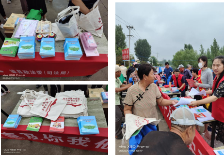 活動現(xiàn)場,設立了宣傳咨詢臺,懸掛橫幅標語,向廣大人民群眾發(fā)放了各類法律知識讀本1000余冊,同時發(fā)放了紙抽、圍裙、布袋、扇子、撲克牌等普法宣傳品5000余份。普法宣傳員圍繞憲法、民法典、禁毒法、社區(qū)矯正法、法律援助法、如何防范電信網(wǎng)絡詐騙、基層矛盾糾紛調(diào)解等法律知識對廣大人民群眾進行了詳細的解讀。