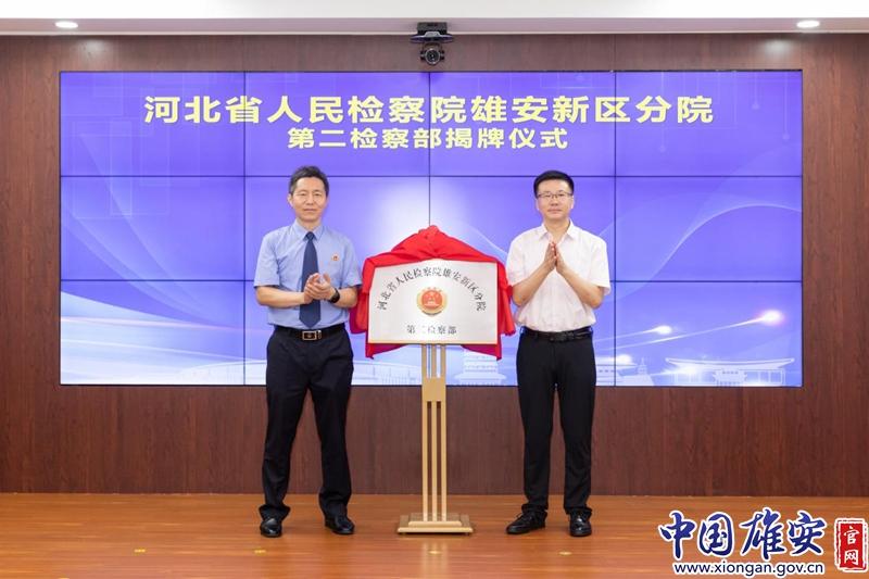 中國(guó)雄安官網(wǎng)7月19日電(崔利杰)7月19日,河北省人民檢察院雄安新區(qū)分院第二檢察部揭牌成立。河北省人民檢察院黨組成員、政治部主任李明,雄安新區(qū)黨工委委員、管委會(huì)副主任陳峰出席揭牌儀式并為第二檢察部揭牌。雄安檢察分院黨組書(shū)記、檢察長(zhǎng)紀(jì)志明主持揭牌儀式。