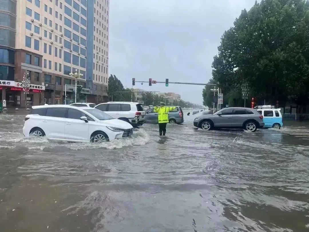 雨中疏導(dǎo)交通,引導(dǎo)車輛避開(kāi)積水點(diǎn)行駛