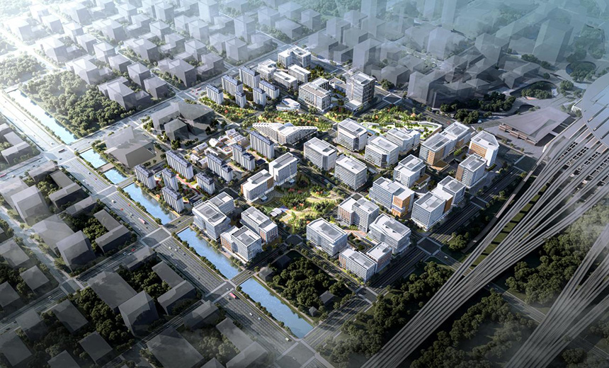 雄安鐵建中心日景鳥(niǎo)瞰效果圖。