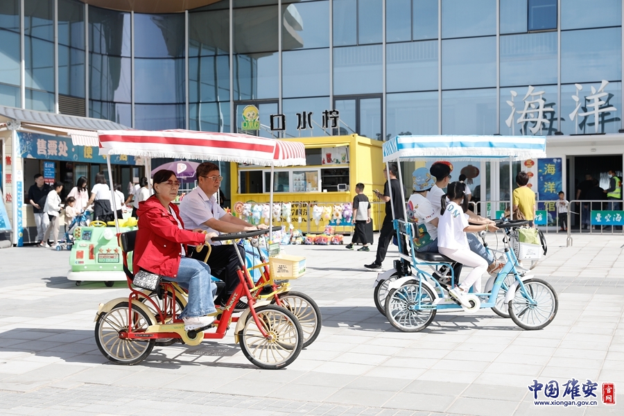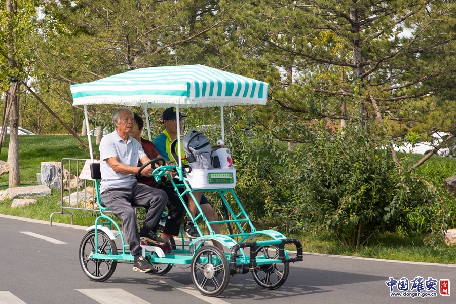 游客乘坐觀光自行車在園內(nèi)游玩。中國(guó)雄安官網(wǎng)毛鶴然 攝
