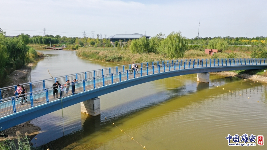 游客在園內(nèi)橋上駐足觀景。中國(guó)雄安官網(wǎng)毛鶴然 攝