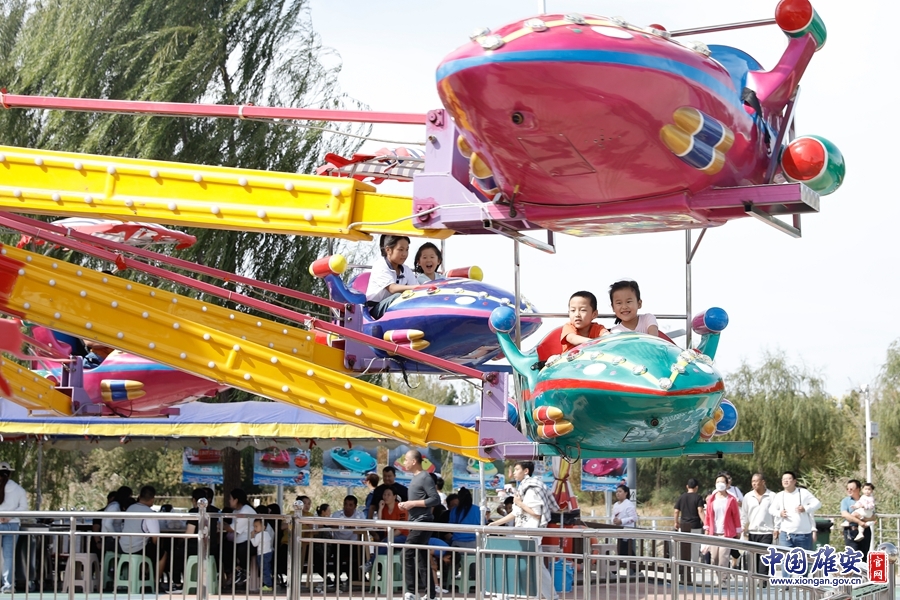 孩子們?cè)趫@內(nèi)游樂(lè)場(chǎng)玩耍嬉戲。中國(guó)雄安官網(wǎng)毛鶴然 攝