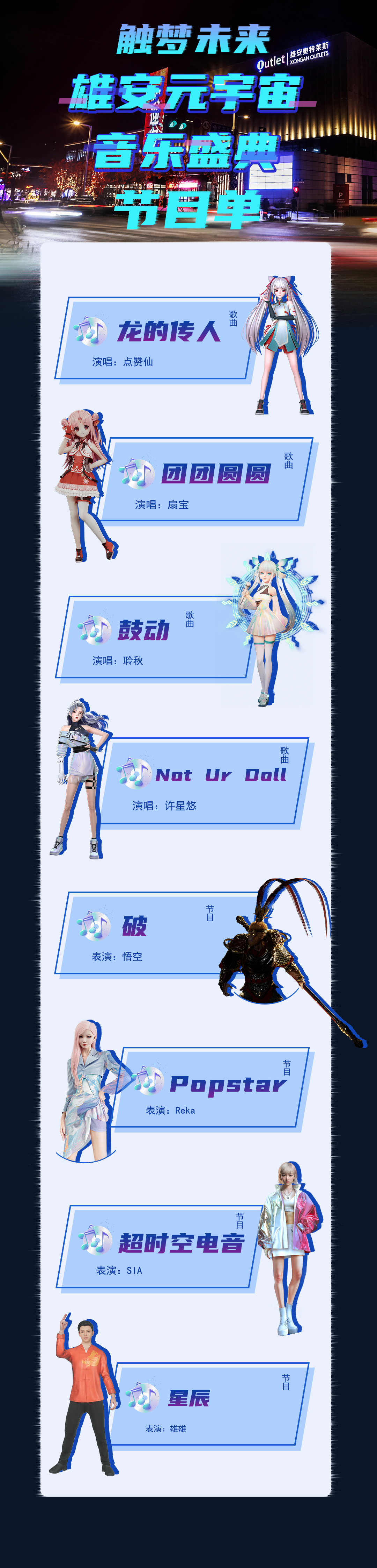 此次音樂(lè)花燈會(huì)活動(dòng)分為“觸夢(mèng)未來(lái)·雄安元宇宙音樂(lè)盛典”“雄安新區(qū)元宇宙元宵燈會(huì)”“人工智能體驗(yàn)區(qū)”“文創(chuàng)展區(qū)”4大主題內(nèi)容。其中,“觸夢(mèng)未來(lái)·雄安元宇宙音樂(lè)盛典”將于2月23日至25日每天19:00開(kāi)場(chǎng),本次音樂(lè)盛典將結(jié)合VR(虛擬現(xiàn)實(shí))、AR(增強(qiáng)現(xiàn)實(shí))、裸眼3D、數(shù)字虛擬主持人等前沿科技,突破傳統(tǒng)音樂(lè)會(huì)形式,帶給觀眾以沉浸式的音樂(lè)體驗(yàn)。