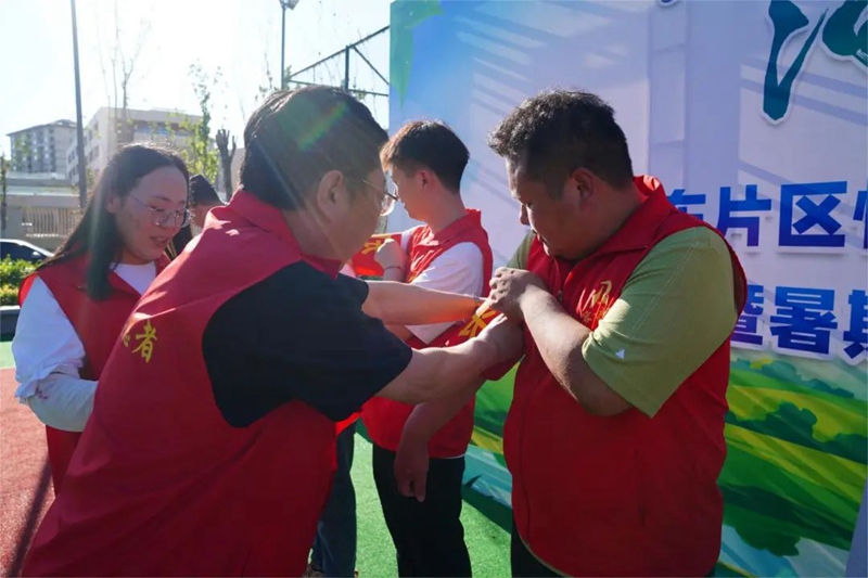 活動現(xiàn)場,悅?cè)菪W(xué)志愿者代表朱皓萱宣讀《“珍愛生命,預(yù)防溺水”倡議書》,與會領(lǐng)導(dǎo)為各組團(tuán)護(hù)河行動志愿服務(wù)隊護(hù)河長佩戴了袖章,容東管委會相關(guān)負(fù)責(zé)同志宣布暑期“護(hù)河行動”活動正式啟動。