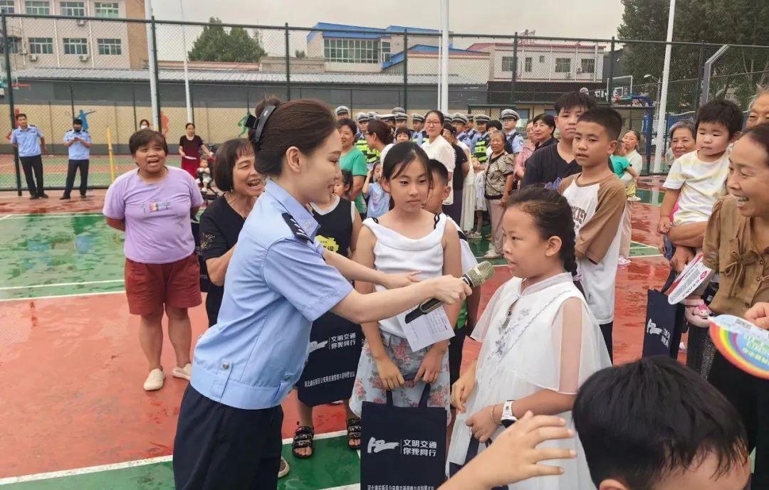 現(xiàn)場,鐵騎隊(duì)員的交通指揮手勢演示,展現(xiàn)了交通警察的風(fēng)采。民警通過向村民講解指揮手勢的重要作用、農(nóng)村道路常見交通違法行為的危害,強(qiáng)調(diào)了服從交警指揮的重要性。有獎問答環(huán)節(jié)更是將整場活動推向了高潮,現(xiàn)場氛圍熱烈,在互動中讓“一盔一帶”、未滿12周歲禁止騎自行車、未滿16周歲禁止騎電動自行車等交通安全知識深入民心。