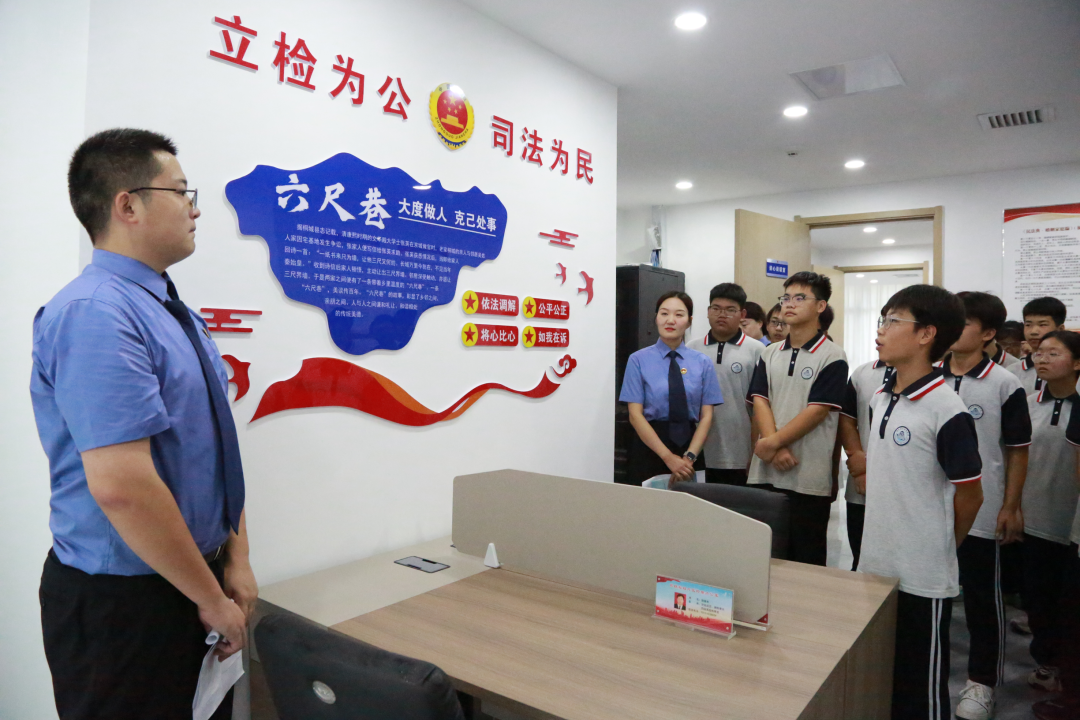 “同學(xué)們,高鐵樞紐片區(qū)檢察服務(wù)中心以服務(wù)征遷群眾為宗旨,它是集家庭教育指導(dǎo)、心理疏導(dǎo)、回訪幫教、矛盾調(diào)處、法治宣傳等為一體的綜合服務(wù)中心……現(xiàn)在大家看到的是我們專門為未成年人設(shè)置的家庭教育指導(dǎo)室和心理疏導(dǎo)室,在這里可以為未成年人及親屬提供全方位的家庭教育指導(dǎo)和心理疏導(dǎo)、心理測評、行為矯正等法律服務(wù)”。在干警講解下,學(xué)生們了解了檢察服務(wù)中心的功能作用,感受到檢察機(jī)關(guān)做實(shí)未成年人保護(hù)工作的司法溫度。