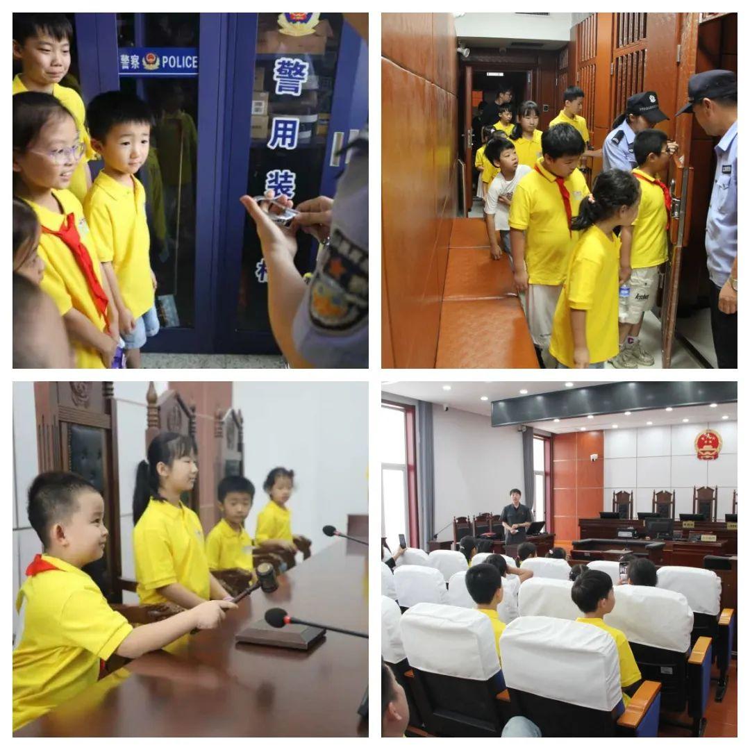 第三站,同學(xué)們?cè)诜ň膸ьI(lǐng)下參觀了警械裝備區(qū)、羈押室,通過(guò)面對(duì)面警械展示,近距離接觸羈押場(chǎng)所,體會(huì)法律的威嚴(yán)和莊重。緊接著,同學(xué)們來(lái)到少年法庭,“小法官們”走上審判席,敲響法槌,在法徽的見(jiàn)證下種下一顆顆法治的“種子”。
