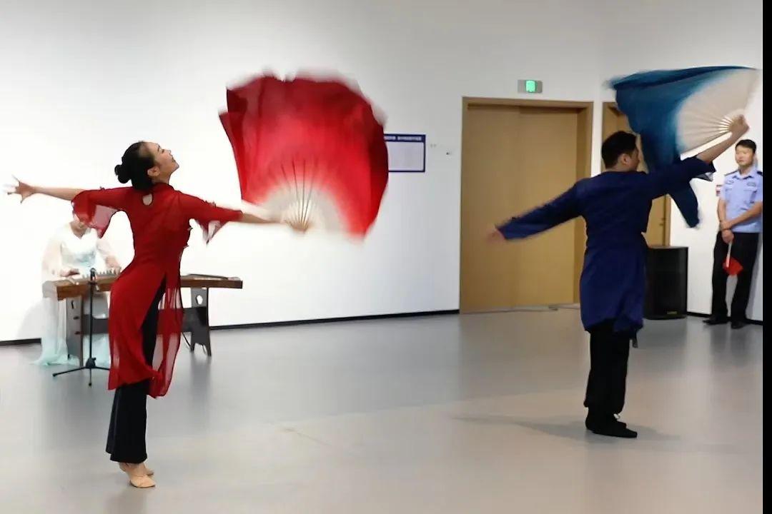 融合古箏、手風(fēng)琴、舞蹈、武術(shù)為一體的《萬(wàn)疆》,用豐富的藝術(shù)形式表達(dá)了對(duì)祖國(guó)的熱愛(ài)和祝?!,F(xiàn)場(chǎng)觀眾紛紛被雄安公安民輔警的風(fēng)采所打動(dòng),伴隨旋律揮舞著手中的紅旗,將現(xiàn)場(chǎng)氣氛推向高潮。