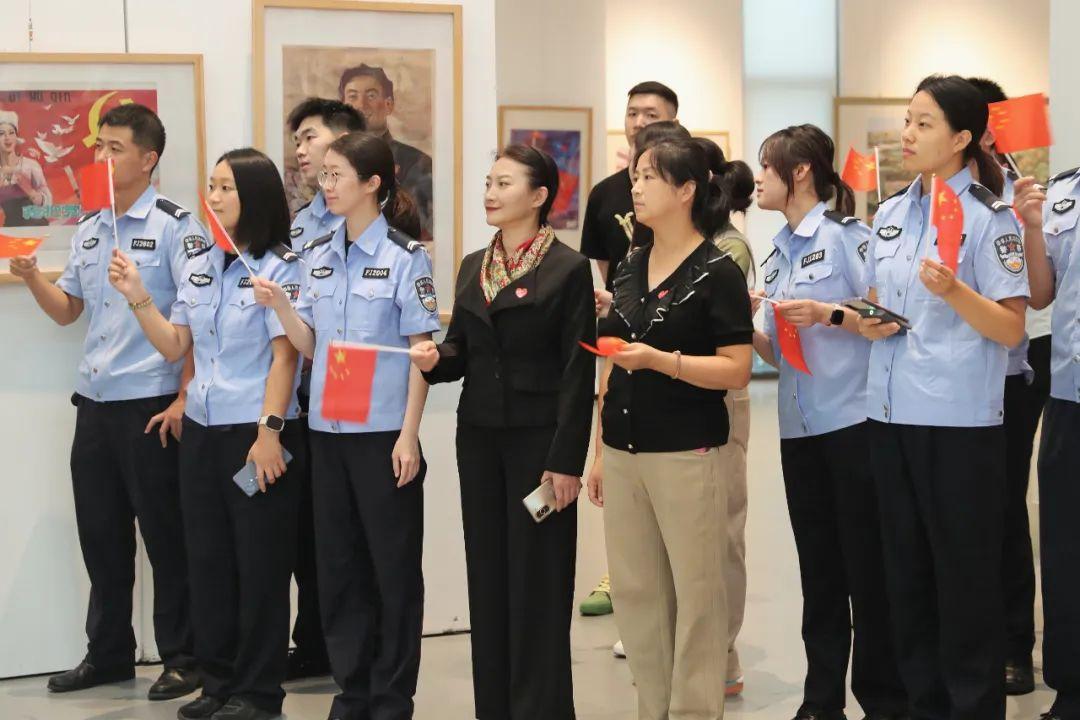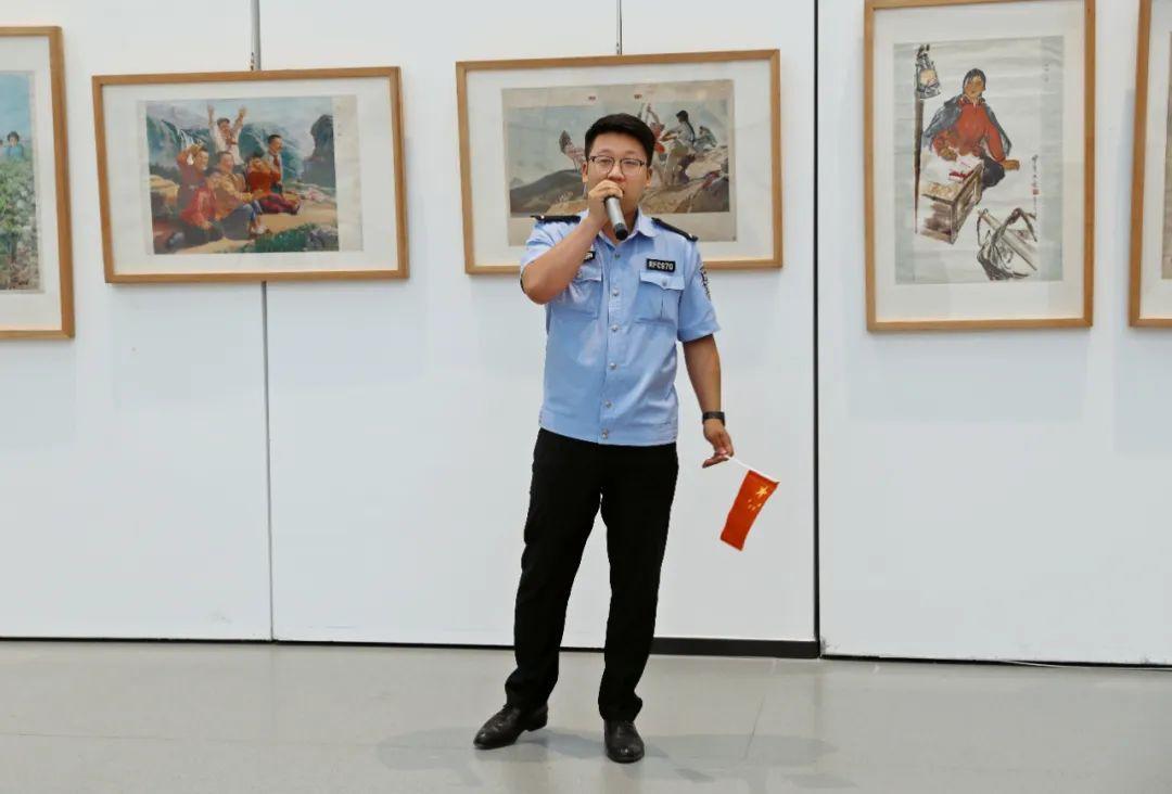 此次展覽主要展示反映新中國(guó)成立以來(lái)一系列重大歷史事件宣傳畫(huà)、年畫(huà),以及描繪新區(qū)建設(shè)發(fā)展的部分美術(shù)作品,百余幅作品如同歷史畫(huà)卷般在大家眼前徐徐展開(kāi)。民輔警穿梭其間,仿佛穿越時(shí)空隧道,親眼見(jiàn)證了新中國(guó)從百?gòu)U待興到繁榮昌盛的壯麗圖景,一筆一劃,都仿佛是祖國(guó)前進(jìn)的鏗鏘足音,在大家心中激蕩起了強(qiáng)烈的共鳴。大家或駐足凝視,或低語(yǔ)交流,分享著各自對(duì)新中國(guó)發(fā)展歷程的感慨與認(rèn)識(shí)。