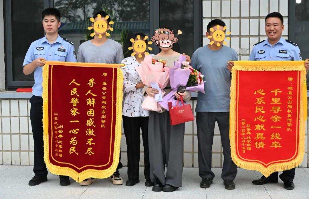 團(tuán)聚的當(dāng)天,劉先生、段女士夫婦給雄縣公安局和板東刑警隊(duì)送上了致謝錦旗,用他們樸實(shí)的方式,向?qū)びH路上遇到的濃濃“警”色致以深深的敬意。