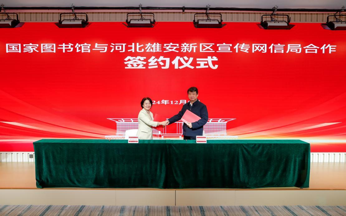 人民網(wǎng)雄安12月9日電 (記者宋燁文)日前,國(guó)家圖書(shū)館與雄安新區(qū)宣傳網(wǎng)信局在雄安科創(chuàng)中心舉行合作簽約儀式,雙方將共建雄安圖書(shū)館暨國(guó)家圖書(shū)館雄安分館。文化和旅游部公共服務(wù)司副司長(zhǎng)閆曉東,國(guó)家圖書(shū)館黨委書(shū)記、副館長(zhǎng)陳櫻,雄安新區(qū)黨工委委員、宣傳網(wǎng)信局局長(zhǎng)邊建國(guó)出席簽約儀式。