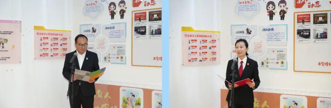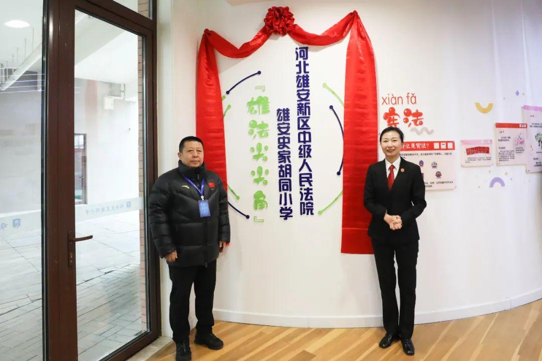 為充分發(fā)揮法治副校長(zhǎng)職能延伸作用,做好新區(qū)青少年普法宣傳教育工作,切實(shí)增強(qiáng)新區(qū)中小學(xué)生法律意識(shí)和法治觀念,12月12日,雄安中院與雄安史家胡同小學(xué)聯(lián)合開(kāi)展“雄法尖尖角”法治角揭牌活動(dòng)。雄安中院黨組副書(shū)記、副院長(zhǎng)李靜靜、雄安史家胡同小學(xué)校長(zhǎng)張欣欣、校長(zhǎng)助理化國(guó)輝出席活動(dòng)并致辭,雄安中院少審?fù)ジ删?、雄安史家胡同小學(xué)師生代表參加活動(dòng)。