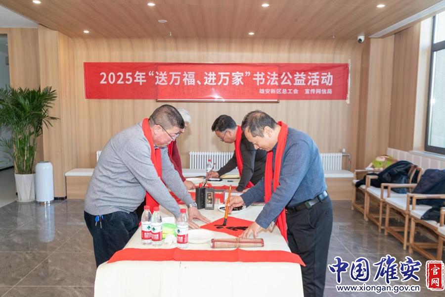 1月19日,雄安新區(qū)總工會和宣傳網(wǎng)信局在容東康寧雄觀書屋聯(lián)合開展2025年“送萬福、進萬家”書法公益活動。書法家們現(xiàn)場書寫春聯(lián)、福字,創(chuàng)作出一幅幅飽含新春祝福的作品,向廣大居民朋友送上新春祝?!,F(xiàn)場群眾在書法家的指導下,拿起毛筆,嘗試自己書寫春聯(lián)和“福”字,在濃濃墨香中感受新春的溫暖與喜悅。