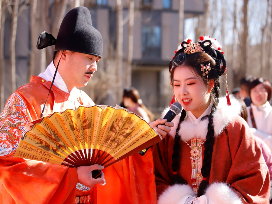 活動內容精彩紛呈,共設置了“李白對詩”“團圓錘丸”“福運紅包”“幸運抽獎”等別出心裁的互動游戲環(huán)節(jié),書法家揮毫潑墨,現(xiàn)場書寫送福團扇,手藝人精心制作糖葫蘆和炫彩棉花糖等美食,讓大家在游戲活動中品味元宵,現(xiàn)場一片歡聲笑語、其樂融融,洋溢著喜慶祥和的節(jié)日氛圍。