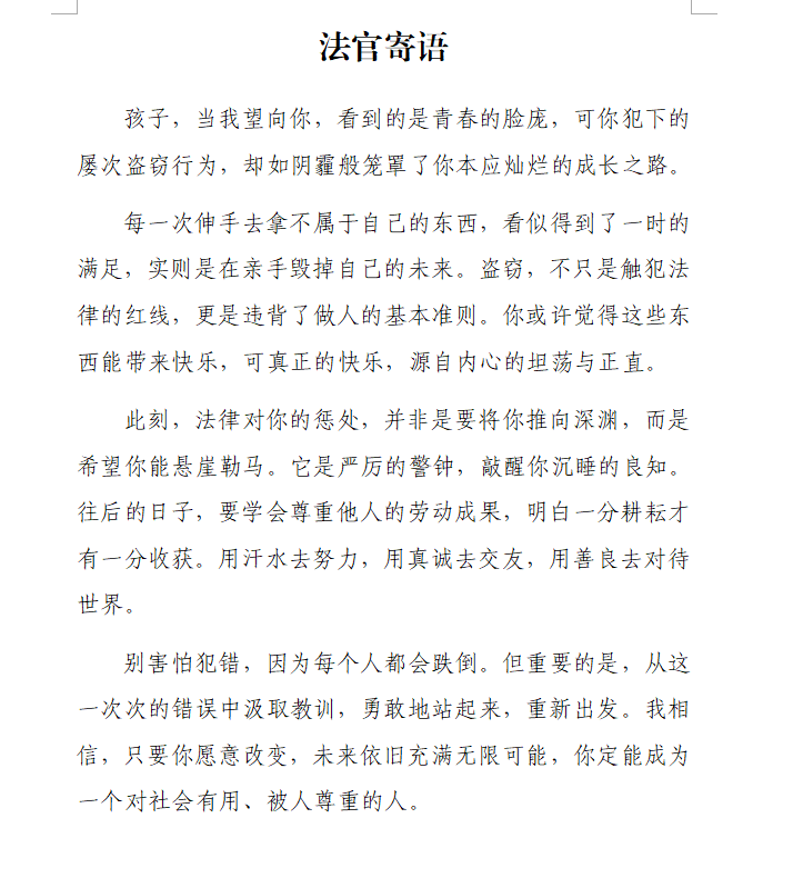 判決送達(dá)并生效后,被告人坦然接受判決結(jié)果。該院隨即對被告人進(jìn)行了回訪,對案卷進(jìn)行了封存,并與孩子及家長約定好下一次的回訪見面時間。
