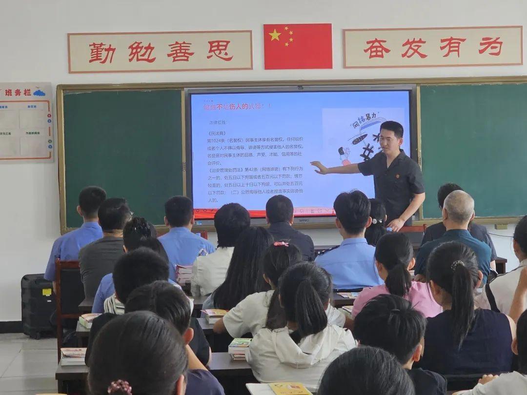活動中,雄安站樞紐片區(qū)人民法庭法官助理、法治副校長肖陽以通俗易懂的語言,以案說法的形式,從校園欺凌、網(wǎng)絡(luò)暴力、人身權(quán)利、未成年人犯罪等內(nèi)容切入,結(jié)合《中華人民共和國民法典》《中華人民共和國未成年人保護(hù)法》《中華人民共和國預(yù)防未成年人犯罪法》以及《中華人民共和國刑法》中保護(hù)未成年人權(quán)益和未成年人犯罪的相關(guān)法律法規(guī),深入淺出剖析了校園欺凌的危害性和法律后果,教育大家不做欺凌者、不做受害者、也不做旁觀者,自覺抵制校園欺凌,勇敢拿起法律武器保護(hù)自己?;顒游猜暎ㄔ焊删瘋冞€為學(xué)生們發(fā)放了精心準(zhǔn)備的民法典、未成年人保護(hù)法等宣傳資料,希望同學(xué)們和家長們課后能繼續(xù)深入學(xué)習(xí)法律知識。