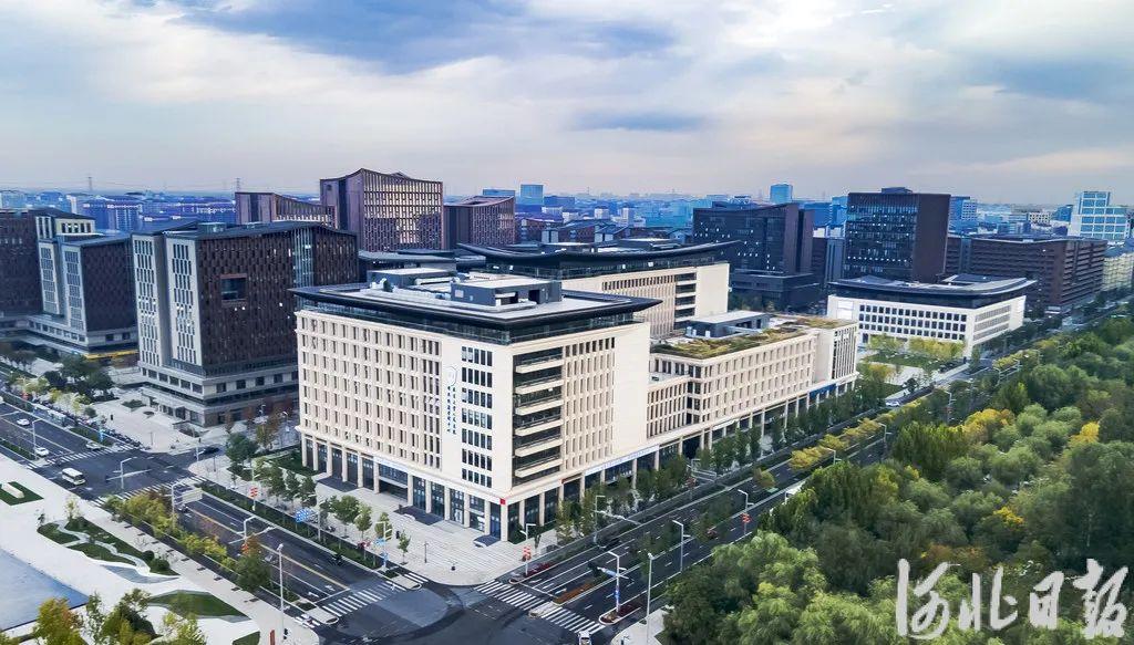 無人機(jī)拍攝的雄安新區(qū)空天信息大廈。(資料片)河北日報記者 劉光昱 攝