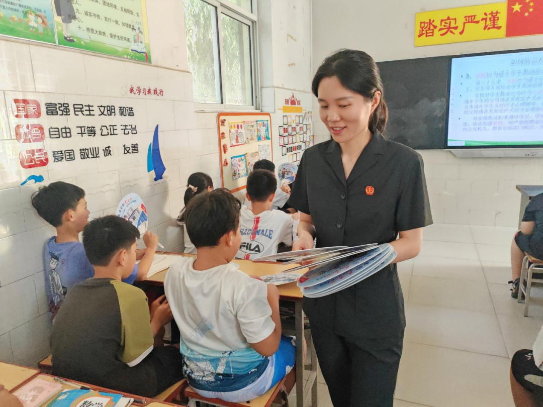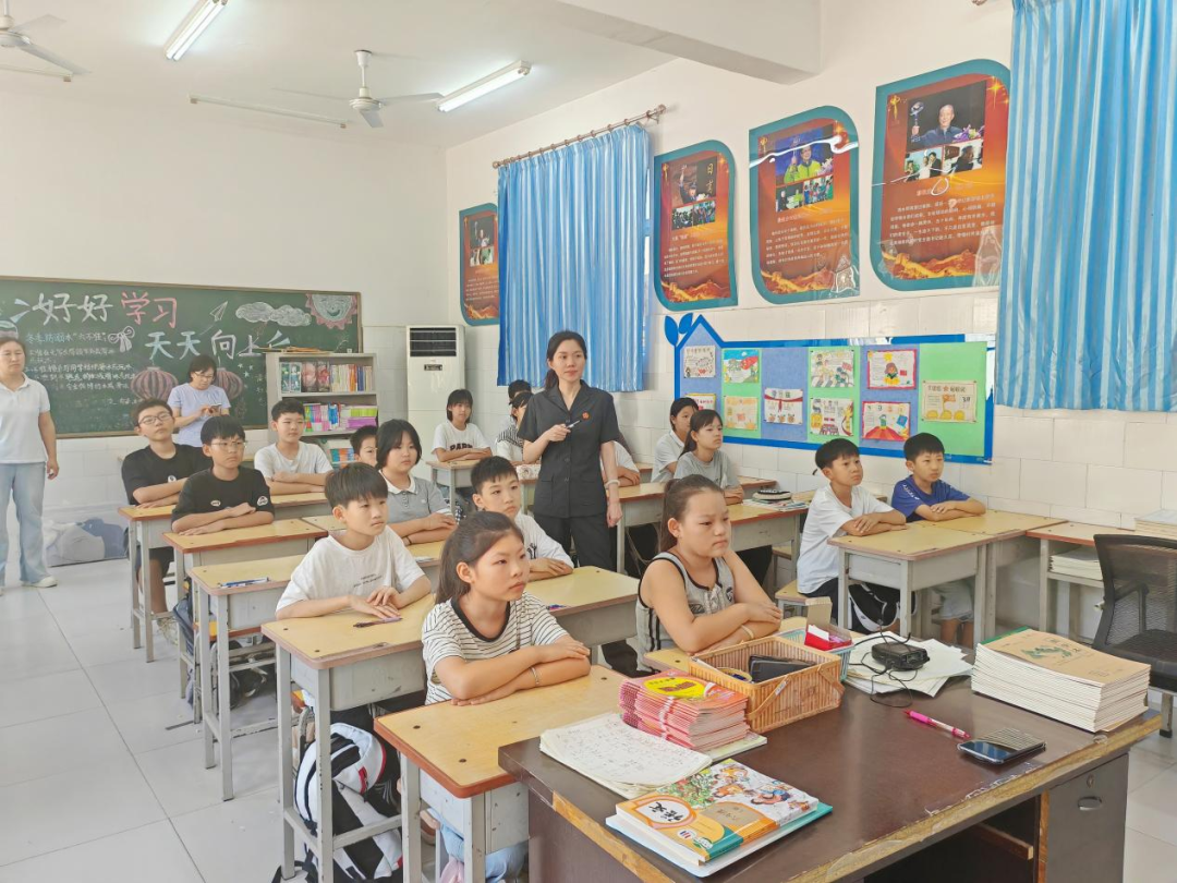 “說不!”“告訴老師!”“尋求幫助!”——孩子們舉起小手爭先恐后地回答,在歡聲笑語中學(xué)會了自我保護(hù)的知識。除了積極的互動,現(xiàn)場還為每位同學(xué)發(fā)放了未成年人司法保護(hù)品牌“雄小荷”主題宣傳扇。小小的扇子不僅送來清涼,更將法治清風(fēng)送入校園,將法治的種子播撒在每個孩子心中。