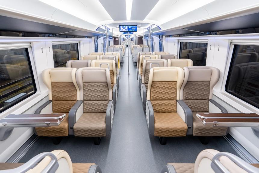 京雄快線D型市域動(dòng)車組車廂內(nèi)部。雄安軌道公司供圖