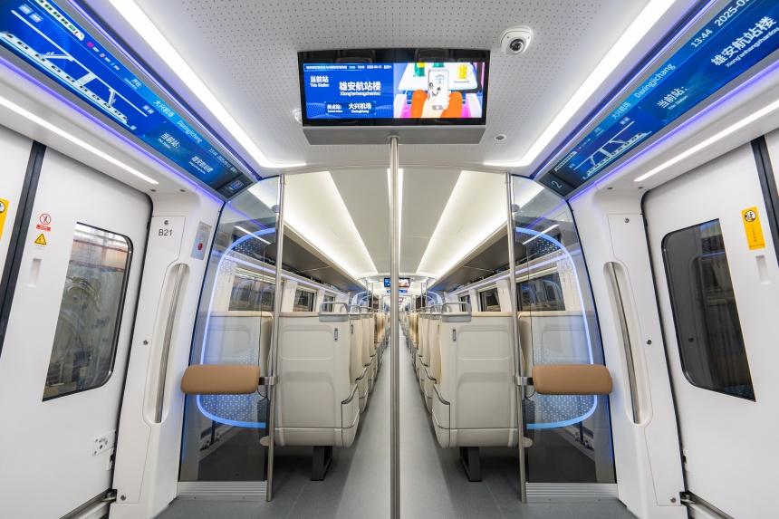 據(jù)介紹,京雄快線列車突破了速度高、站間距大、貫通運(yùn)營、4/8混跑等重大挑戰(zhàn),應(yīng)用自采信、自學(xué)習(xí)、自決策的智慧控制技術(shù),行車故障降低95%,實(shí)現(xiàn)電氣故障不停車,大幅提升運(yùn)行效率。同時(shí)列車搭載多項(xiàng)智能服務(wù)系統(tǒng),如實(shí)時(shí)顯示車廂擁擠度、快慢車停站、動(dòng)態(tài)時(shí)刻表等信息,助力乘客高效出行,提升乘車體驗(yàn)。