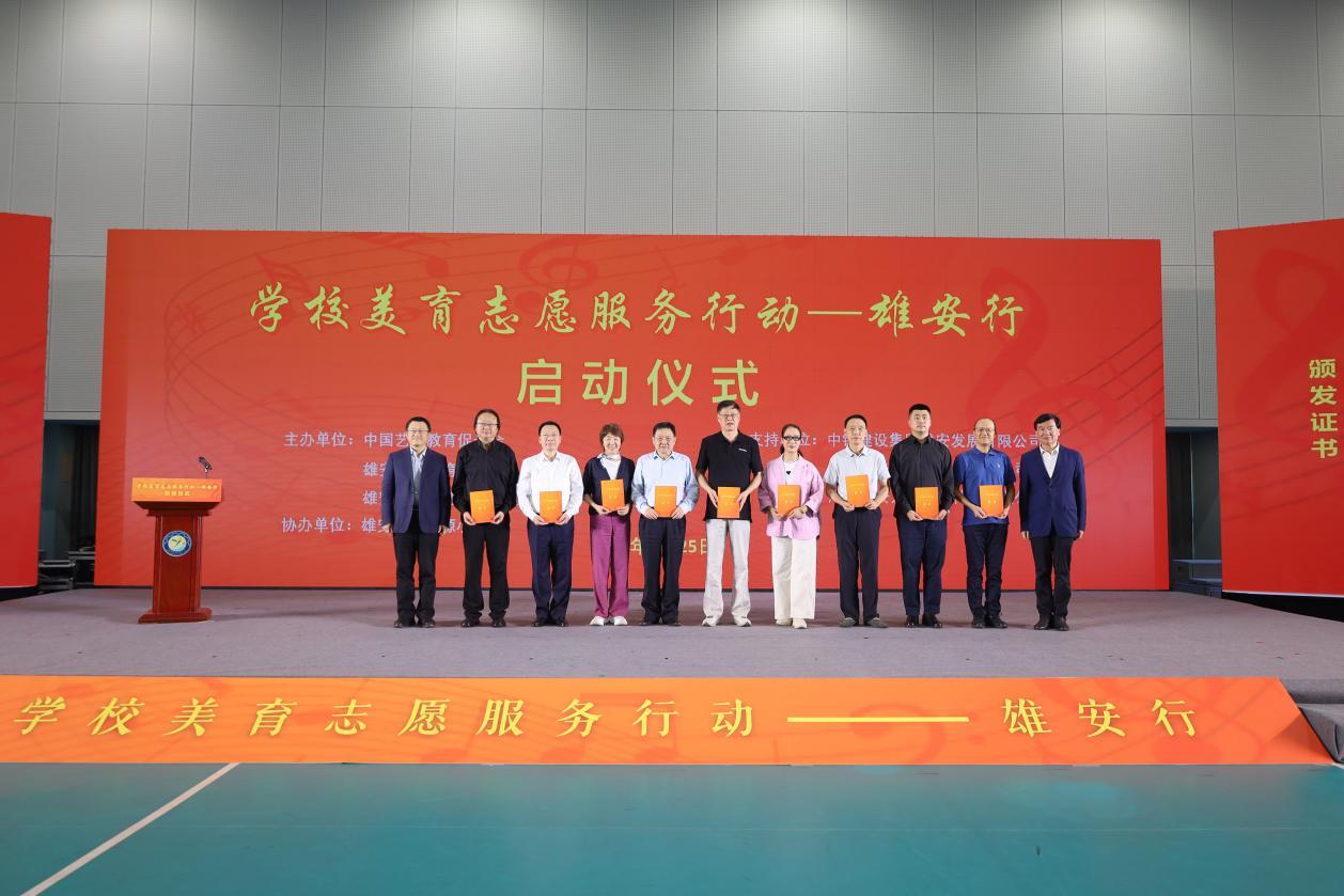 啟動(dòng)儀式上,中國(guó)藝術(shù)教育促進(jìn)會(huì)以及雄安新區(qū)教育發(fā)展基金會(huì)相關(guān)負(fù)責(zé)人為首批志愿服務(wù)專家代表、愛(ài)心企業(yè)頒發(fā)了志愿證書(shū)。國(guó)家一級(jí)演員、程派青衣李海燕作為志愿者代表發(fā)出倡議,呼吁更多藝術(shù)家、美育專家和優(yōu)秀教師加入志愿服務(wù)行列。