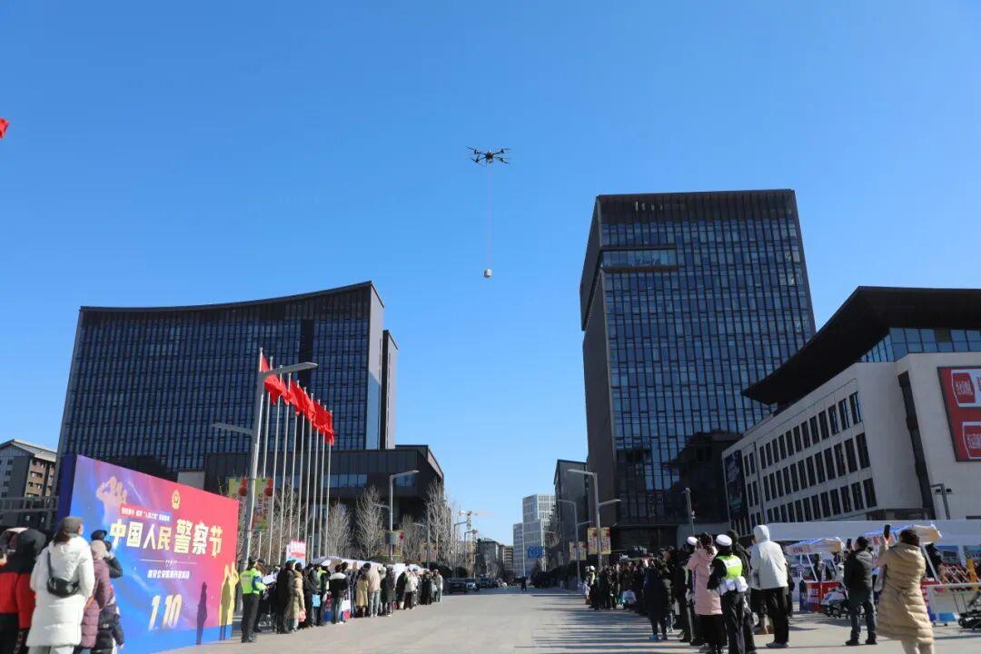 抬頭仰望,科技賦能的“空中之眼”同樣吸睛。警用無人機騰空而起,依次展示空中巡航、高空喊話、模擬投送物資等實戰(zhàn)技能,以立體防控的硬核實力,展現(xiàn)了智慧警務為城市安全織就的“天網”,讓現(xiàn)場群眾直觀感受到科技強警的蓬勃力量。