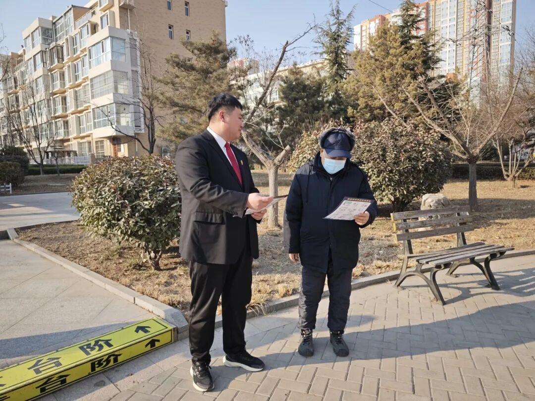 雄縣法院與檢察院向社區(qū)居民發(fā)放普法宣傳品。