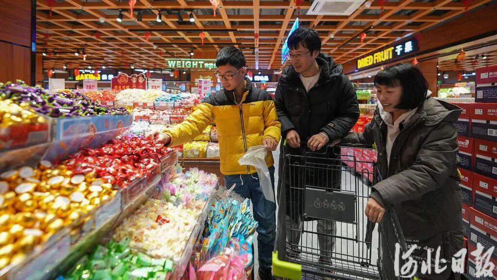 2月6日,竇則勝和家人在雄安奧特萊斯挑選年貨。河北日報見習(xí)記者李暢攝